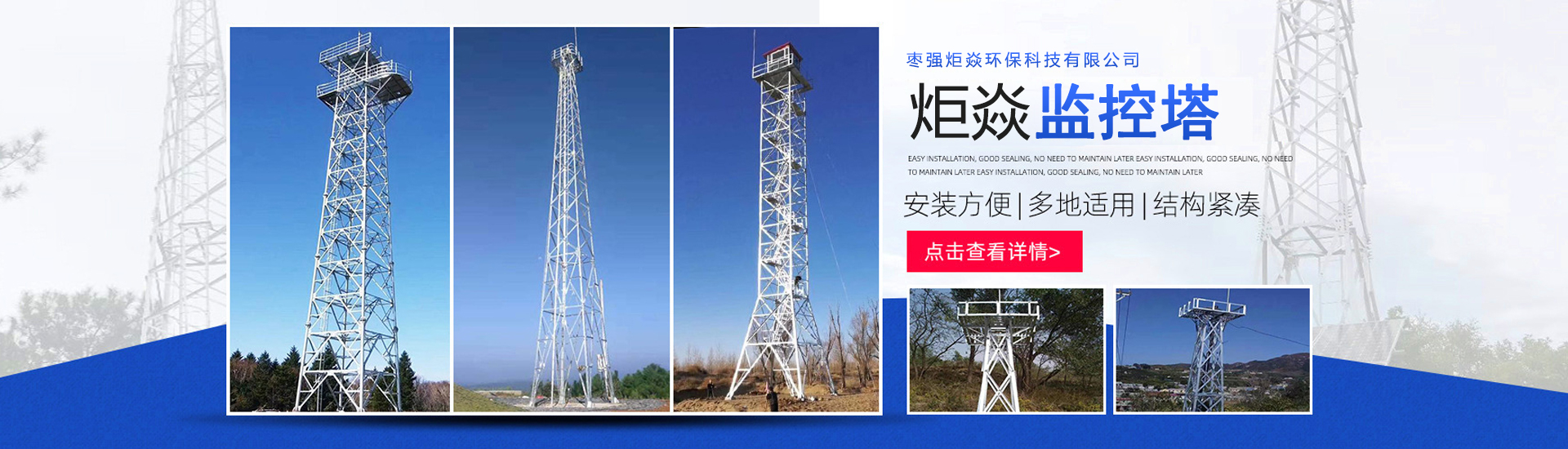 棗強(qiáng)炬焱環(huán)保科技有限公司主要產(chǎn)品有:5G基站配套產(chǎn)品、避雷塔、監(jiān)控塔、監(jiān)控桿、瞭望塔、微波塔、消防訓(xùn)練塔、煙筒塔等鐵塔產(chǎn)品,集設(shè)計、制造、施工安裝于一體。產(chǎn)品主要銷往部隊、移動、聯(lián)通、水利、石油、煤碳、冶金、廣播電視等部門,行銷全國30個省市自治區(qū)。